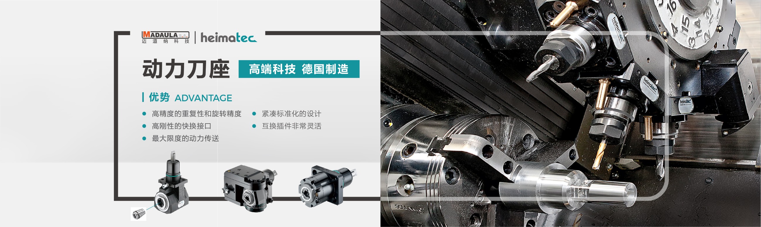 德國(guó)heimatec · 動(dòng)力刀座 -- 品質(zhì)可靠、經(jīng)久耐用、可以不間段連續(xù)工作; -- 全球各大機(jī)床廠家標(biāo)配產(chǎn)品